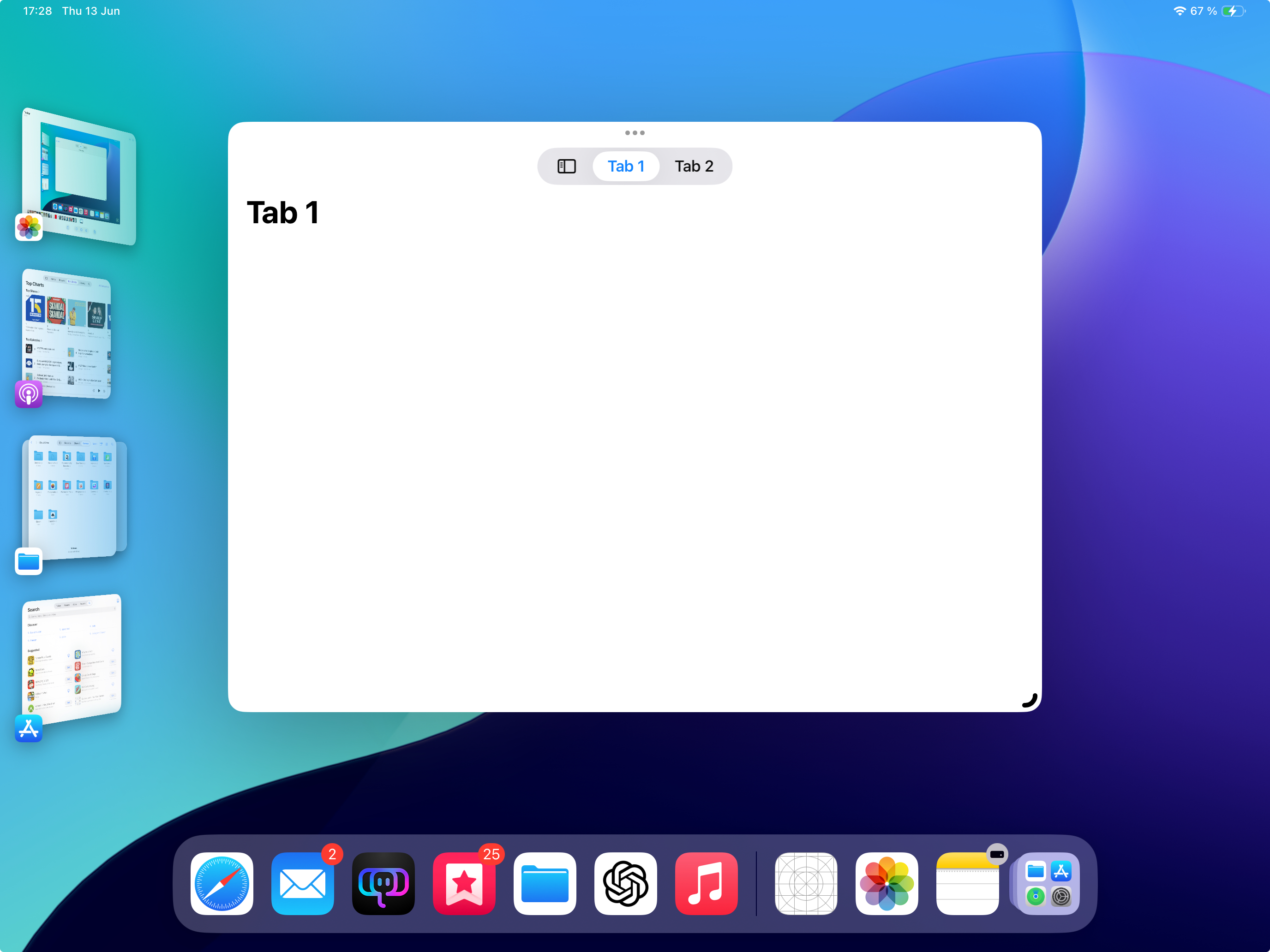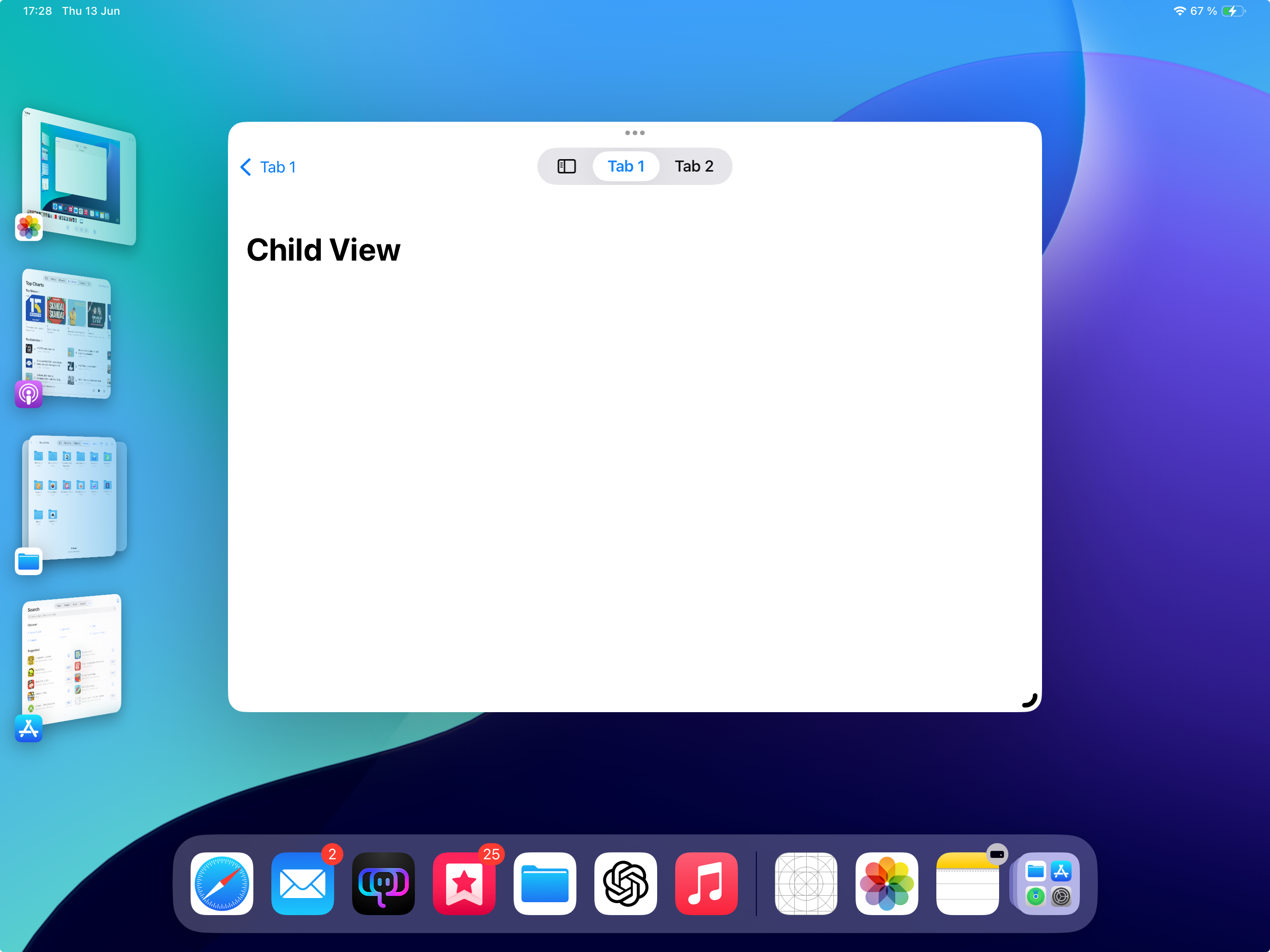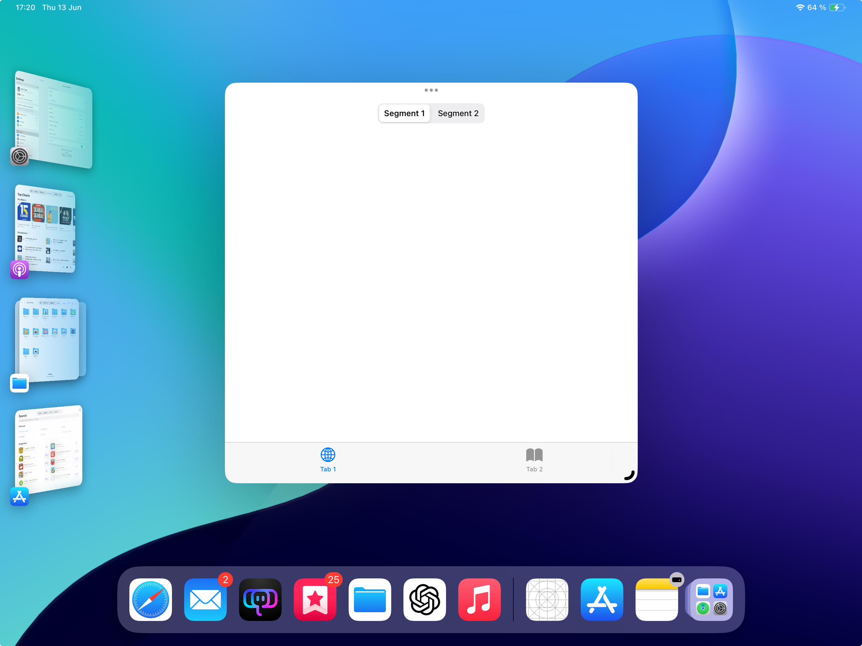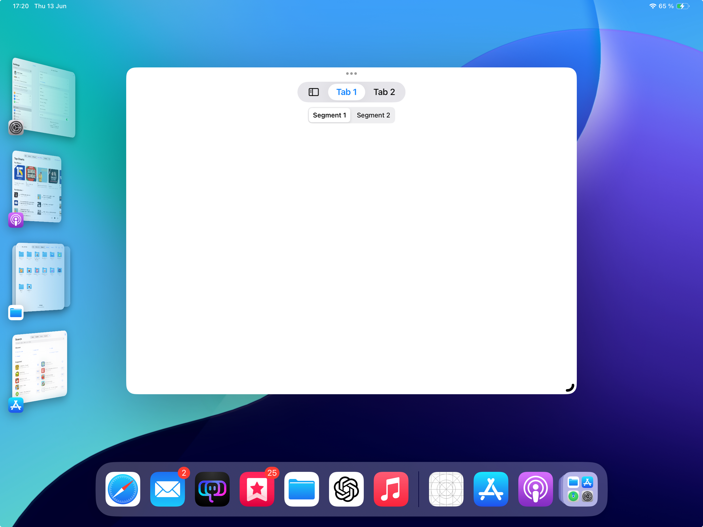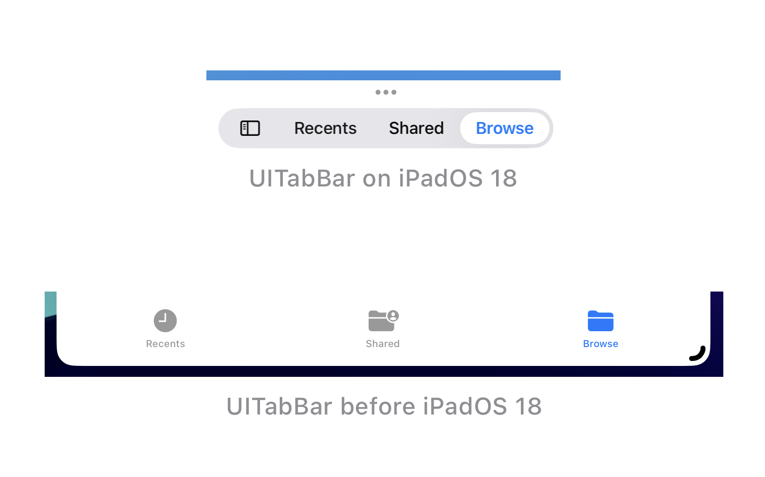 We’ve seen a significant evolution in UI design on iPadOS, transitioning from tab bars only to including sidebars starting from iPadOS 14, and now having both in iPadOS 18. This has resulted in Apple’s own apps implementing different UI styles, contributing to a confusing user experience. Here are some examples: If an iPad app previously wanted to use a sidebar, it typically relied on UISplitViewController. When the window size decreased, it would switch to a traditional bottom tab bar. Many Apple apps followed this approach. Some apps still retain the split view controller sidebar functionality. They allow you to hide the sidebar, switching to a traditional bottom tab bar when the window is resized. Examples include Music and Shortcuts. On the other hand, there are apps that have adopted the updated UITabBarController, offering both a tab bar and a sidebar. Examples here include Podcasts, Files, and TV. Photos has taken a different path by removing the tab bar from its iPhone version, and consequently, the iPad version only features the sidebar in the new implementation style, without the option for an additional tab bar. These variations demonstrate the diversity in how Apple’s apps now handle navigation and interface elements on the iPad, contributing to the complexity of the overall user experience. This is truly a mess, every app looks and works different. But it gets worse...